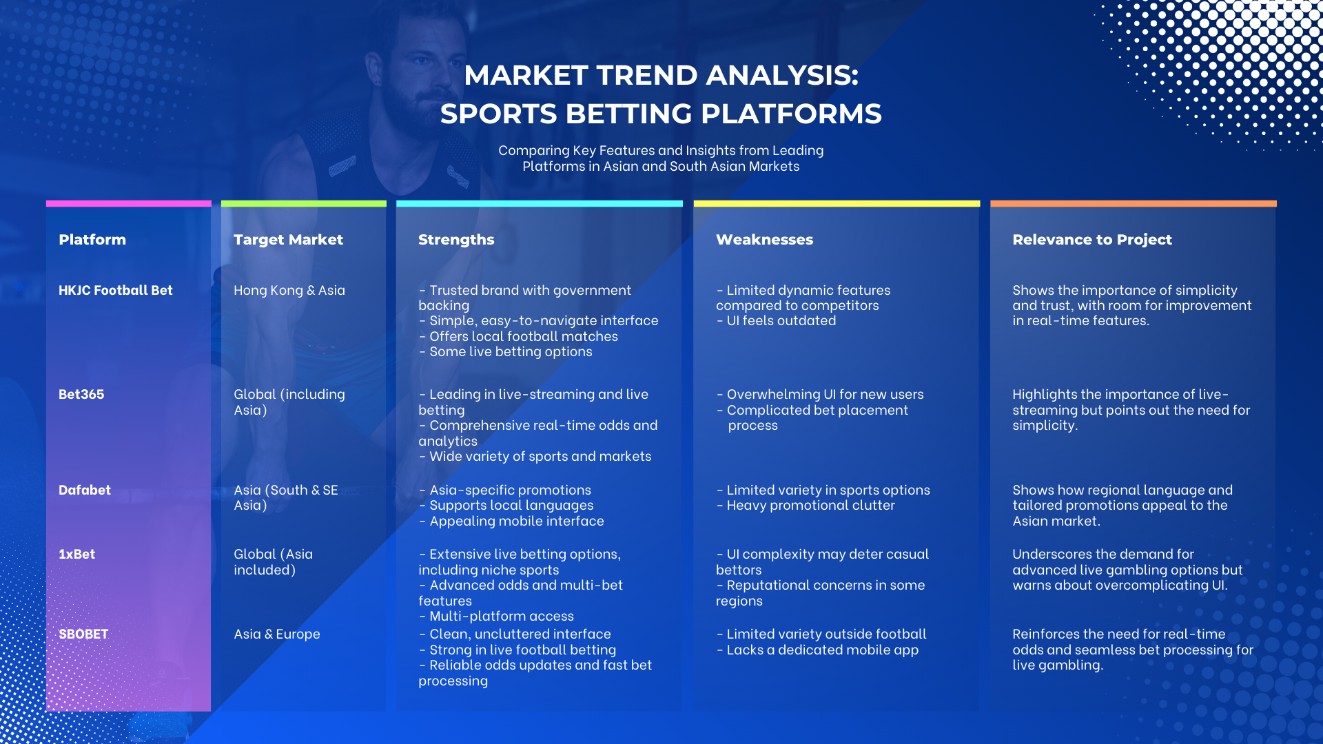 We conducted a quick market analysis to explore competitors and industry standards. Most major online casinos integrated sports betting in a streamlined, intuitive manner.